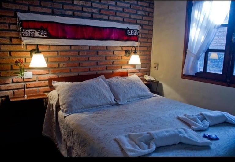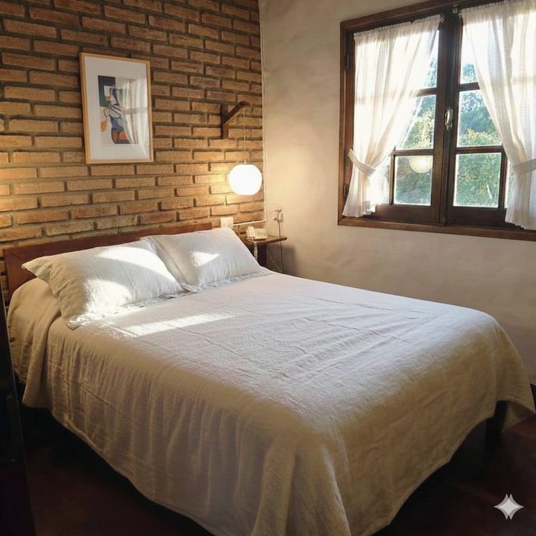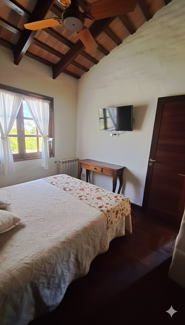 Cama doble matrimonial en habitación principal.